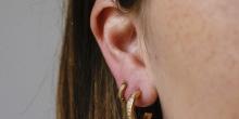 Boucles d'oreilles mini créoles en acier uni ou doré à l'or fin par ionisation. Petites et très fines, des bandes de zirconiums serties forment comme une ligne sur le métal. Elles peuvent se mélanger avec d’autres boucles d’oreilles créoles pour celles qui ont plusieurs piercing. Diamètre : 10mm