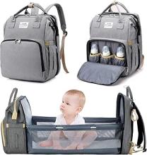 Sac à Dos à Langer pour Bébé,Sac de Voyage avec Lit de Bébé Portable,Grande Capacité Sac à Couches Multifonction Imperméable,2 Sangles de Poussette,pour Biberon Sac à Dos (Gris) : Amazon.fr: Bébé et Puériculture
