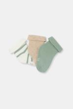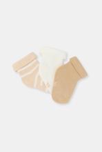 Dès les premiers jours des petits, ces chaussettes douces réchauffent et protègent les petits pieds. Indispensables, à glisser dans la valise pour la maternité, elles se déclinent en trois modèles assortis à la collection Obaïbi. Lot de 3 paires.