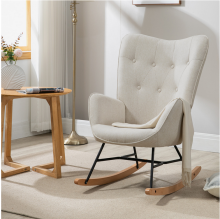 Fauteuil à bascule allaitement scandinave chaise loisir et repos en tissu avec pieds en e' bois métal pour salon, chambre, beige