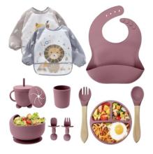 Lot de 12 couverts pour bébé - Cuillères pour bébé - Gobelets d'apprentissage - Bavoir en silicone - Assiette pour bébé avec ventouse - Couverts