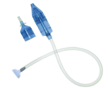 Cet aspirateur nasal fonctionne manuellement et est livré avec deux accessoires spécifiques, l'un adapté dès la naissance jusqu'à 3 mois et l'autre à partir de 3 mois et plus.