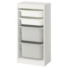 TROFAST combinaison structure + bacs, blanc blanc/gris, 46x30x94 cm Les enfants ont besoin de rangements spacieux pour leurs affaires. La série TROFAST est composée de caissons en bois, de rangements en filet et de bacs en plastique (min. 50 % recyclés). Facile à tirer vers soi, à transporter et à remettre en place.