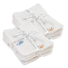 Lot de 12 lingettes lavables coton bio baleines - Lot de 12 lingettes bébé en pur coton lavables et réutilisables pour la toilette de bébé. Une face en éponge écrue pur coton, l'autre face en gaze de coton impr
