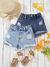 SHEIN 2 pièces/set Short en jean délavé bleu foncé et bleu clair pour jeune fille