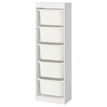 TROFAST combinaison structure + bacs, blanc/blanc, 46x30x145 cm Les enfants ont besoin de rangements spacieux pour leurs affaires. La série TROFAST est composée de caissons en bois, de rangements en filet et de bacs en plastique (min. 50 % recyclés). Facile à tirer vers soi, à transporter et à remettre en place.