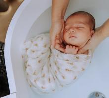 Trousse de toilette bébé. 9 accessoires essentiels inclus : thermomètre de bain, anneau dentition, brosse à cheveux pour bébé, couple ongle, mouche-bébé, lime à ongle... Rangement simplifié. Facilement transportable. Tissu recyclé. Indispensable des listes de naissance futurs parents. Livraison rapide. Satisfait ou remboursé.