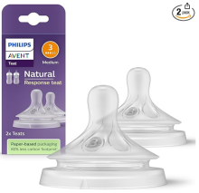 Philips Avent Lot de 2 tétines pour biberon à Réponse Naturelle 0% BPA, Débit 3 pour Bébé de 1 mois