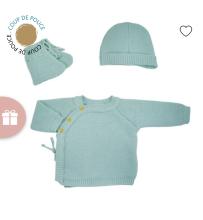 Ensemble naissance bébé brassière, bonnet et chaussons - Vert Sauge