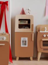 Coup de coeur pour ce frigo en bois dans lequel les enfants pourront ranger leurs aliments. Composé de 2 parties : 1 partie haute congélateur et 1 partie basse