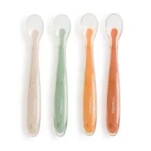 Leur long manche ergonomique est idéal pour atteindre le fond des petits pots de purée ou de yaourt sans effort. L’embout souple et fin en silicone est parfaitement adapté à la bouche de Bébé. Doux pour les gencives sensibles, il résiste également aux premières petites dents.
