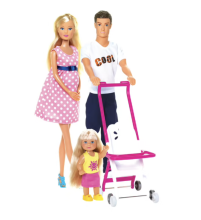 Contenu : Lolly, Tom, leur fille et des accessoires de poupées : une poussette, une caméra, une pelle, un râteau et un sceau.