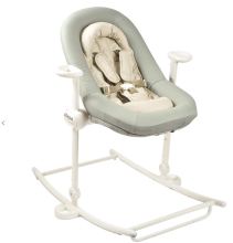 Cette balle sensorielle en tissu de couleur verte de Lilliputiens , sur laquelle trône Joe le Dragon, dispose de poignées aux diverses matières afin de stimuler la motricité fine.