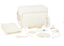 La trousse de toilette évolutive et grand format pensée jusqu'au moindre détail ! Accessoires: 1 lange en double gaze de coton, 3 lingettes réutilisables en micropolaire, 1 brosse en bois, 1 thermomètre de bain, 1 thermomètre rectal, 1 anneau de dentition, 1 lime à ongles, 1 mouche-bébé, 1 coupe-ongles, 1 paire de ciseaux à bouts ronds, 1 masseur de gencive