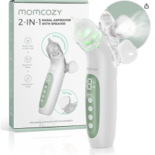 Momcozy BreezyClear Aspirateur nasal électrique 2 en 1 avec pulvérisation, aspirateur nasal pour bébé, ventouse nasale 65 kPa avec 4 niveaux d'aspiration réglables, nettoyeur de nez électriqu