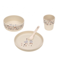 On adore Mr. Dino! Et quand il est sur un bol avec ventouse en silicone , c'est encore mieux car il ne tombe pas et ne se casse pas.