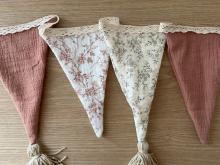 Une douce guirlande de fanions afin de joliment décorer la chambre de votre mini ♥️ On adore sa douce ambiance bohème avec sa fine dentelle et son joli pompon. Coloris gaze disponibles : écru, marron, latte, rose, kaki, rouille,