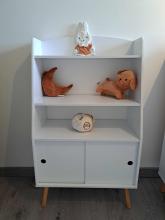 Cette magnifique bibliothèque pour enfant s'adaptera parfaitement à sa chambre, elle dispose notamment de placard avec portes coulissantes. Votre enfant pourra y stocker livres, jouets, cahiers et peluches !