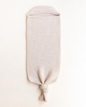 Wrap your little one in this knitted cocoon. Keeps your baby cosy and warm. You can use it without the cap on, or leave the arms outside the cocoon. 0-8 months Put the knot higher with newborns and make it come down when your baby grows Material: 100 % extra fine Italian merinowool (oeko-tex,mulesing free). It's not n
