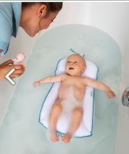 Permet de baigner bébé confortablement. Grâce aux microbilles qu’il contient, le matelas de bain se moule autour du corps du bébé qui flotte en toute sécurité.
