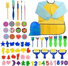 Surplex 65 Pièces Peinture éponge Lot de pinceaux, Brosses de Peinture pour Enfants Maternelle Artisanat Art DIY Peinture d'apprentissage Précoce, Tablier et Pinceaux : Amazon.com.be: Loisirs créatifs