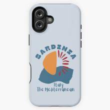 Coque iPhone for Sale avec l'œuvre « Résumé Sardaigne Italie La Méditerranée - Texte Bleu - Vacances / Croisière » de l'artiste KelWitt
