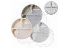 PandaEar Assiettes à succion en silicone pour bébés et tout-petits, lot de 3 assiettes divisées incassables avec couvercle - Lavable au lave-vaisselle et au micro-ondes (Gris Brun Crémeux)