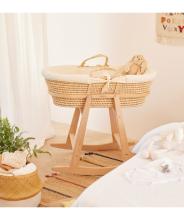 Ensemble support de couffin à bascule Laura et couffin en osier écru