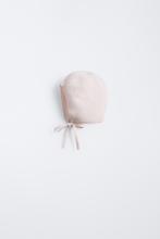 Bonnet en tissu 100 % cachemire. Avec cordons réglables devant.