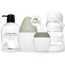 Découvrez ce coffret composé de 2 biberons silicone anti-colique, boîte doseuse & nettoyant biberon. Dès la naissance. Made in France.