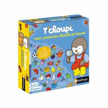 Ce premier cherche et trouve T'choupi Nathan invite deux à quatre joueurs à retrouver les quatre objets de leur planche ! La règle du jeu est simple : un joueur retourne une planche et dès qu’un joueur trouve l’image sur le plateau, il pose un jeton sur la planche. La taille des images est spécialement adaptée aux petites mains. Ce premier cherche et trouve T'choupi Nathan développe le sens de l’observation et la rapidité des jeunes joueurs qui vont adorer retrouver leur héros préféré !