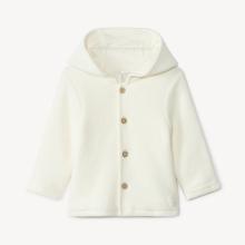 Veste en tricot. Coloris uni écru. Capuche. Ouverture boutonnée à l'avant. Boutons coco. Étiquette tissée feuilles à la base. Manches longues. Doublure en jersey. Imprimé feuilles/pots de fleurs all-over.