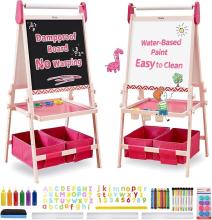 FUNLIO Chevalet d'art pour enfants âgés de 3 à 8 ans, tableau anti-déformation & cadre effaçable, enfant avec magnétique/tableau blanc, 3 hauteurs réglables, avec rouleau de papier rose : Amazon.com.be: Jouets