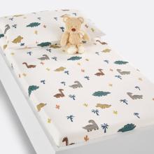 Les dinosaures, c’est une vraie histoire de famille chez julien— vocabulaire de pro à l’appui ! Alors hop, on opte pour un drap plein de jolis dinos !