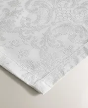 Nappe en coton jacquard à motifs floraux et finition résinée.