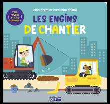 L’enfant découvre la vie sur un chantier, avec ses engins et ses matériaux, en s'amusant à tirer ou pousser des tirettes et en faisant tourner des roues !