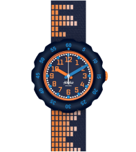 La montre SOUNDSCAPE est un modèle pour enfants au style musical, orné d’un paysage sonore orange sur un bracelet bleu nuit. Dotée d’un boîtier, d’une boucle et d’une lunette rotative assortis, elle constitue un cadeau pédagogique, qui aidera les enfants à apprendre à lire l’heure en parfaite harmonie.