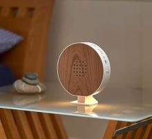 Northpoint Boîte à bruit naturel - En bois véritable - Invisible - Détecteur de mouvement HF - Lumière rechargeable - Avec support mural - Rond - Bois de hêtre