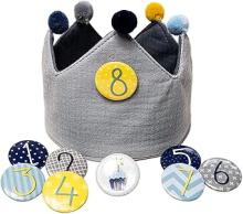 Papierdrachen Geburtstagskrone Musselin mit Zahlen - für den Kindergeburtstag - Krone aus Musselinstoff mit Button Zahlen von 1-8 | Grau l Set 6 : Amazon.de: Spielzeug