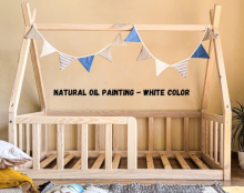 Un lit au sol pour notre petite. On a tellement adoré le côté pratique du lit au sol pour Paris!