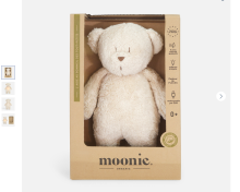 Bien plus qu'une peluche, l'ourson Moonie est une veilleuse qui accompagnera bébé lors de l'endormissement grâce à sa lumière douce et ses bruits blancs. Petit ourson au look vintage doté d'un module émettant une berceuse et cinq sons apaisants comme le souffle du vent ou le bruit des vagues pendant 30 minutes, un capteur intelligent se réactive si bébé commence à pleurer. Idéale pour apaiser et endormir le tout-petit, voici le parfait cadeau de naissance à offrir à de futurs parents.
