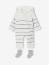 Cet ensemble naissance en tricot réunit une combinaison rayée en maille fantaisie et des chaussettes pour garder bébé bien au chaud ! Mais notre co