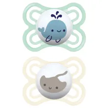 The MAM Perfect pacifier with its unique, extra-thin, flexible teat shape is designed to reduce the risk of misaligned teeth and supports healthy dental development.