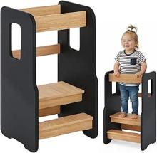 Tour d Observation Enfant, motessori, Chaise Montessori Enfant, Learning Tower, Marche Pied Bois, En Bois, Hauteur Réglable sur 3 Niveaux, Noir/Chêne : Amazon.com.be: Cuisine et maison