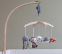 Baby's kunnen kijken hoe de wolkjes en teddyberen ronddraaien terwijl ze in slaap vallen! Haak de mobiel aan de spijlen van de wieg en draai aan de knop om de zachte melodie te activeren die baby rustig maakt en die