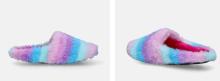 ceci ou une autre paire dans ce style, couleur arc-en-ciel, où on peut glisser les pieds facilement. Romane fait environ du 34
