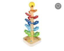 Un grand bâton à tourner et à retourner pour faire glisser les billes et entendre le doux son de la pluie. Les enfants vont aimer observer les billes rouler sur les pièces en bois colorées à l'intérieur de ce joli j
