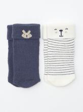 Des chaussettes trop mimi pour bébé sur le thème des animaux ! - Lot de 2 paires de chaussettes - Matière stretch - Imprimés - Revers