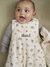 Motifs dinosaures et chaleur douce pour cette belle gigoteuse sans manches du thème MINISAURUS ! Votre bébé pourra s'y endormir paisiblement, en toute sécurité. C'est une belle idée de cadeau de naissance à personna