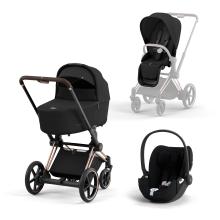 Ensemble complet de poussette, nacelle, assise, et chancelière.